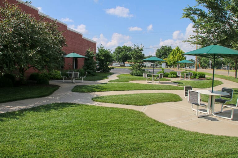You might notice something different here—nearly all of the buildings in a one-block area serve as frontage for the operations of the Solomon Corporation. Headquartered downtown, the company sells, repairs, and recycles electrical transformers throughout the United States and internationally. The corporation also thoughtfully transformed the downtown area into a sleek, modern environment with landscaping, streetscaping, and outdoor lounge areas.