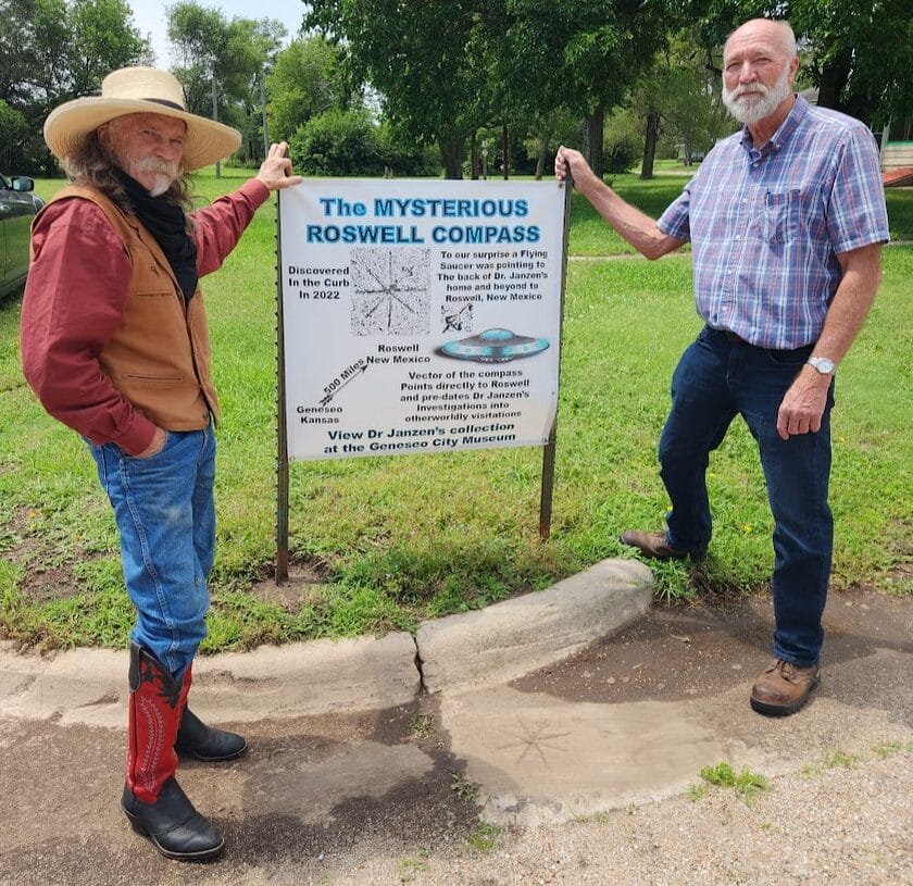 Spaceships are welcome here. Veterans and Outer Space get shared billing. And to make it all down to earth a collection of Boston Terrier china dolls has display space in this quirky museum. Every inch of the Ol' Doc Janzen house is used to tell the Geneseo story and to share artifacts, books, blueprints of fleets of craft from Venus and Mars, and the story of other extraterrestial coincidences. A couple of years ago a small group of locals resurrected the museum and story of aliens visiting the area. It resulted in Geneseo making a proclamation that they are the U.F.O. Capital of Kansas. A mural and alien figures enhance the claim.