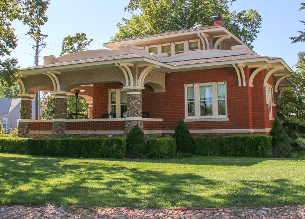 The Justus Bissing Jr. Historic District (NRHP) offers two examples of Bissing's architectural skills. The 1920 two-story, red-brick house, 502 W. 12th St., combines Craftsman and Prairie School styles; and the 1932 Tower Service Station, 504 W. 12th St., was built in a Queen Anne variation style. A Volga German immigrant, Bissing was a well-known craftsman, designer, and inventor in Hays.