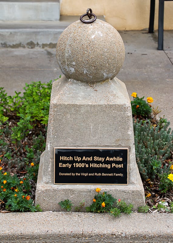 The hitching post in front of the museum and library had its beginnings in the wild cowtown of Abilene. When Abilene modernized and removed the posts, the Bennett family saved this hitching post. After relocating to Talmage, the family donated it to the community.