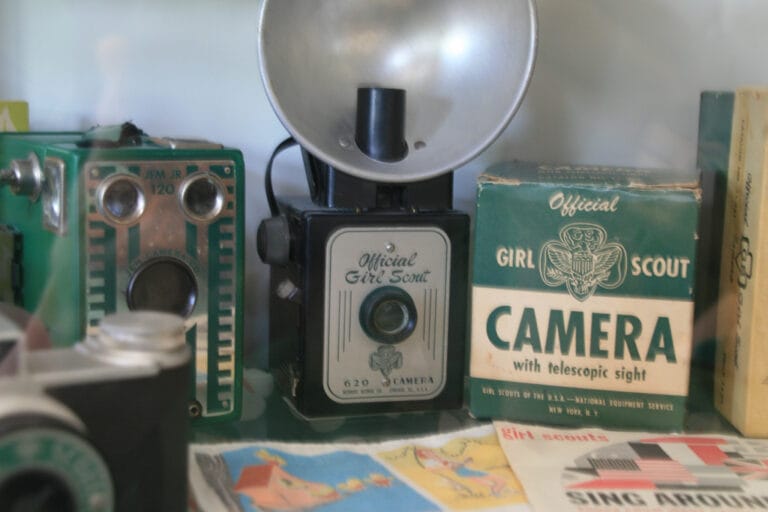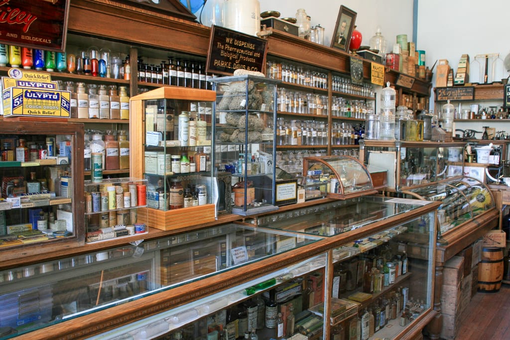 Two museums, owned by husband and wife, Jack and Kathi Crispin, are housed inside the 1881 two-story limestone bank building. Kathi, a life long Girl Scout and leader, has collected an impressive array of scouting memorabilia that tells the story of scouting in the United States. Next door, Jack, retired pharmacist, has created a museum resembling an actual old-time drugstore. Product containers, shelving, druggist tools, and a "shock box" are a few exhibits that make this an exceptional stop. (NRHP)